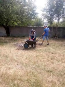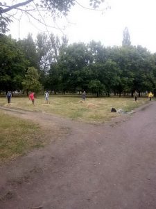 Вместе с сотрудниками «Уютного города» участка благоустройства старшеклассники школ Павлограда занимаются наведением порядка на территории в микрорайоне Бельбес. Работы ведутся непосредственно в том месте, где находится памятный знак ромам, которые погибли во время Холокоста.